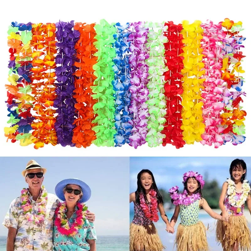 Buy Pack Of 100pcs Hawaiian Theme Party Artificial Flower Garlands Necklace Tropical Beach Summer Pool Party Dress Decoration Gifts